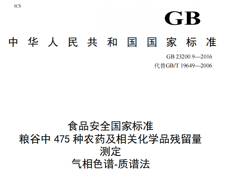GB 23200.9-2016 糧谷中475種農(nóng)藥及相關(guān)化學(xué)品殘留量的測定-氣相色譜質(zhì)譜法 更新日期:2022-12-30 下載包(1)
