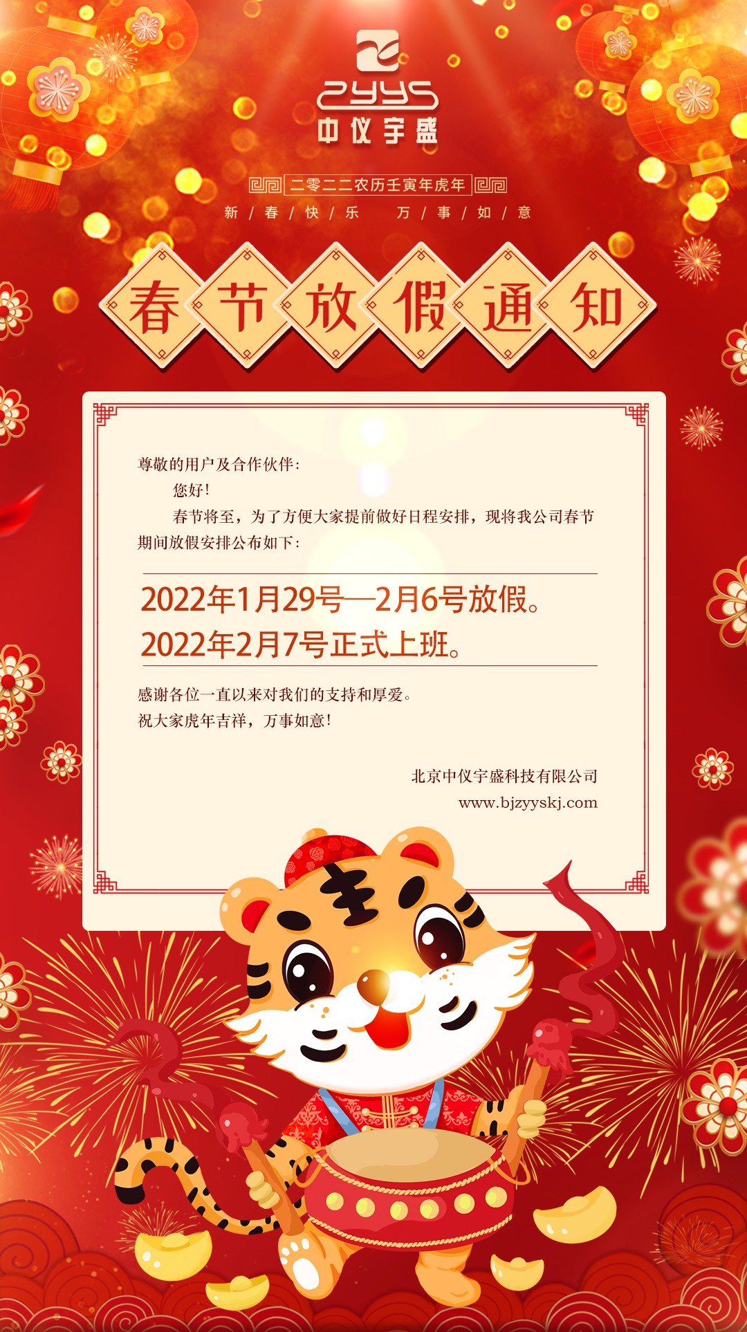 關(guān)于2022年春節(jié)放假安排的通知 更新日期:2022-01-24